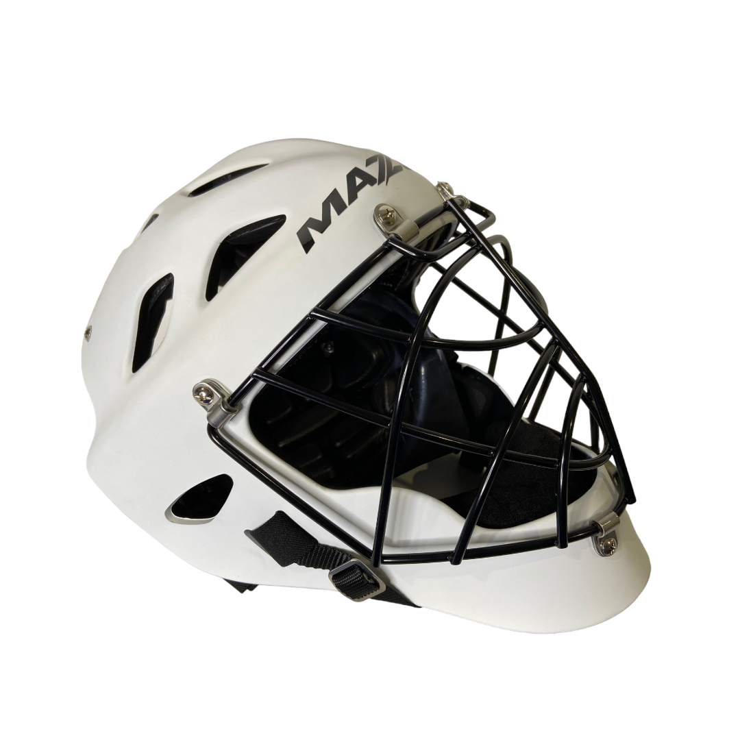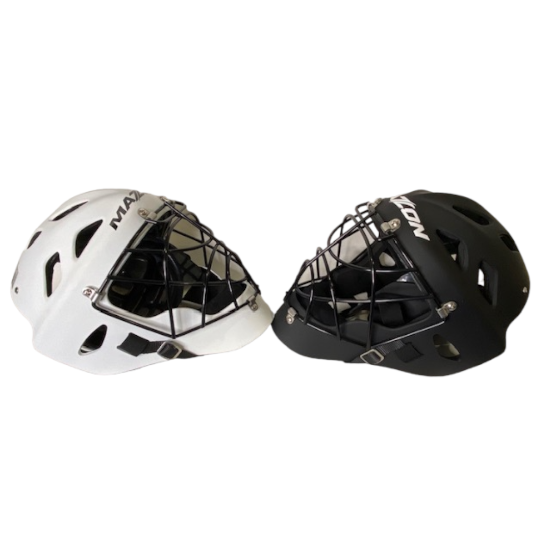 The very latest from leading GK brand Mazon. Lightweight helmet gives excellent protection and performance. Perfect for international to club keepers and great value for schools with the variable fit system. Integrated black wire cage and ‘Coolmax’ sweat liner. Plus GK Helmet Bag.